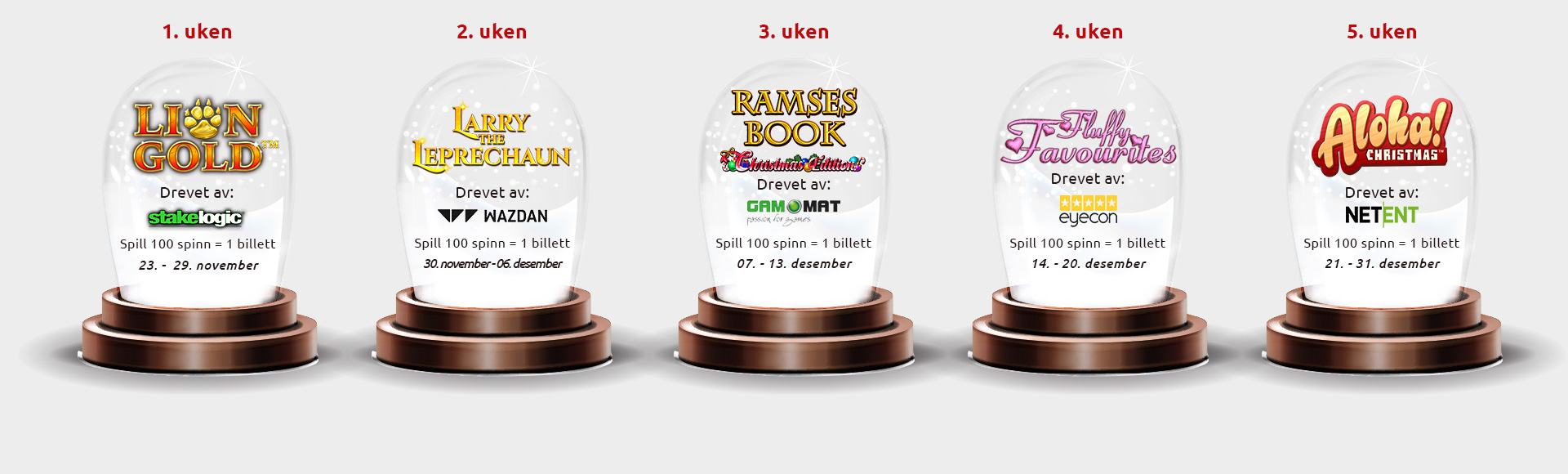 1. Spill minst 100 spinn med ekte penger på den utvalgte automaten, og få en GRATIS daglig turneringsbillett