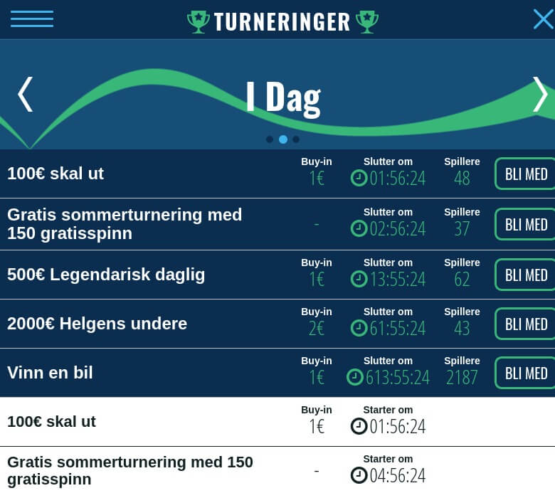 Ser du etter en liten utfordring eller mer spenning som lyser opp dagen? Hva med å bli med på en av våre spennende automatturneringer som vi har gående hele dagen, hver dag?